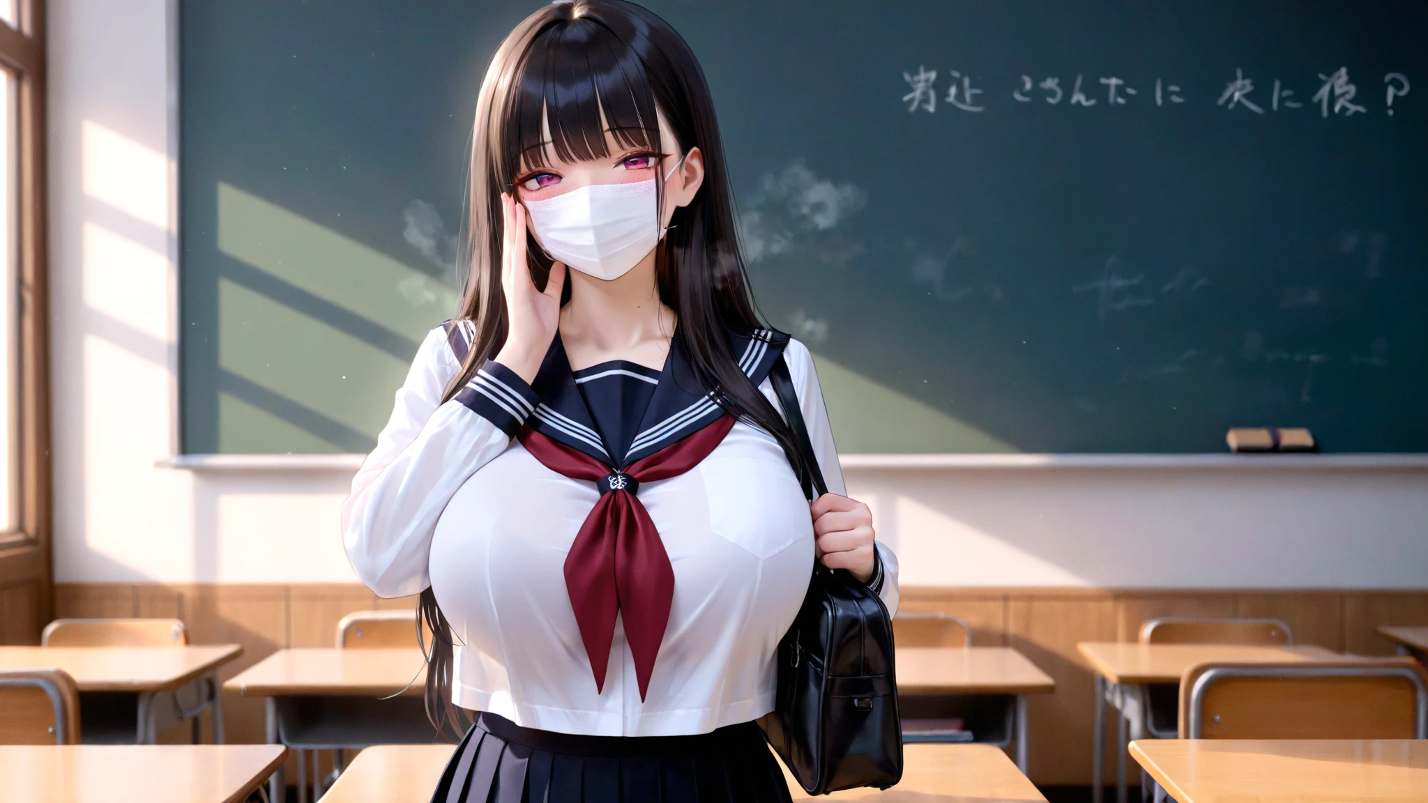 AI Anime School Girl with Mask – マスク姿の学生服イラスト集